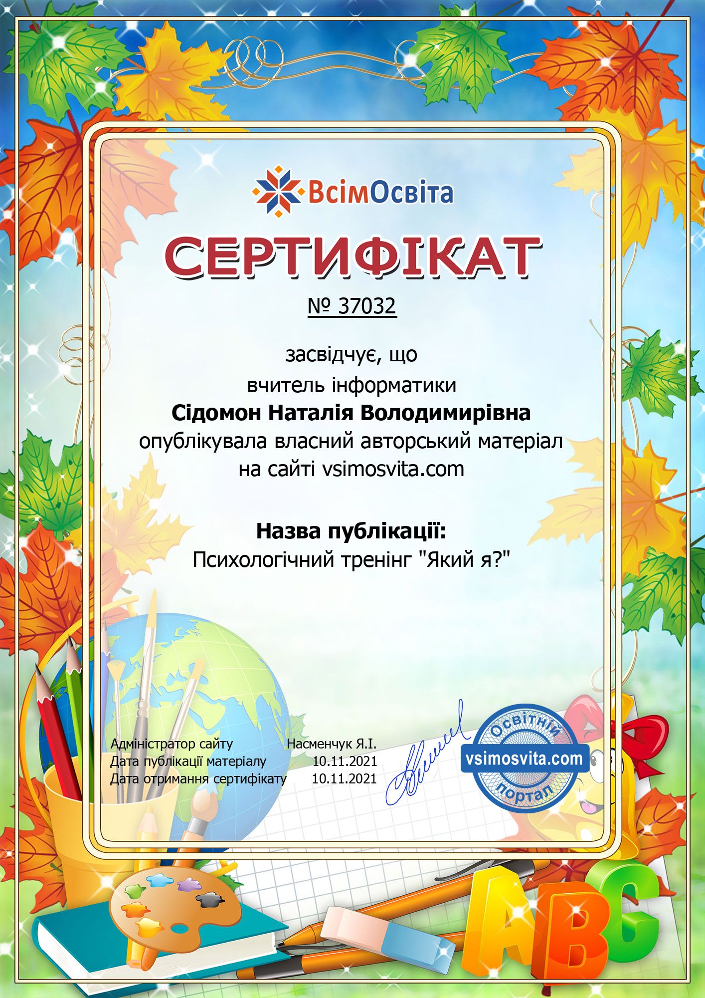 Сертифікат вчителю!